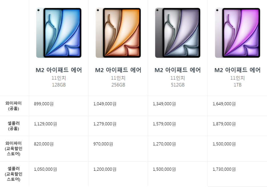 🏷️ 새롭게 출시된 2024 M2 아이패드 에어 11인치 모델의 가격을 정리했습니다.