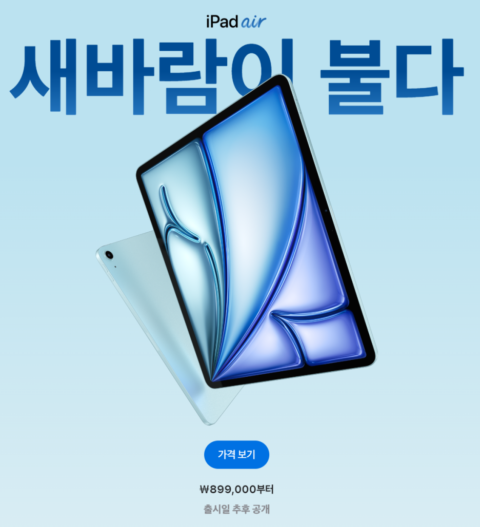 🇰🇷 우리나라의 아이패드 에어 13인치 제품의 출시일은 아직 확정되지 않았습니다.